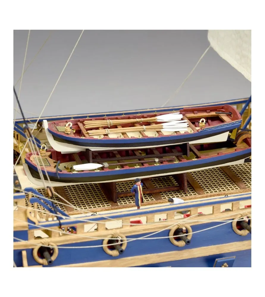 The elite modeler, to whom this dazzling scale model of the Soleil Royal is aimed, will also find Premium quality wooden pieces and... Two free bonuses included ! A wooden base with a metal name plate and a set of twelve figurines of the Soleil Royal crew to be assembled and painted, which will give this naval jewel even more realism than you have without these.