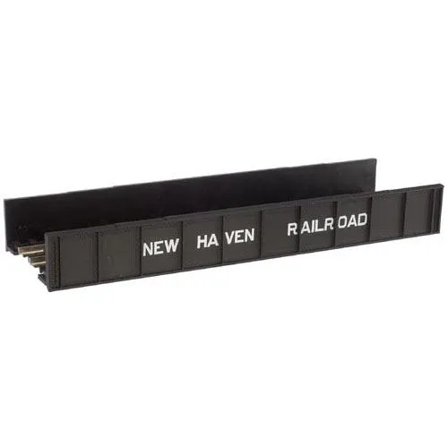 The Atlas 2557 N Scale Decorated Code 80 Plate-Girder Bridge features New Haven livery in black and white with sharp painting and lettering, presenting a highly detailed and prototypically accurate appearance.