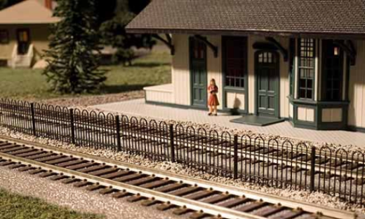 This is an Atlas Model Railroad N-Scale 15 Hairpin Fence. The hairpin fence was commonly used by railroads to keep people from crossing the tracks in station areas. This fence can also be used around parking lots, parks, cemeteries and homes.