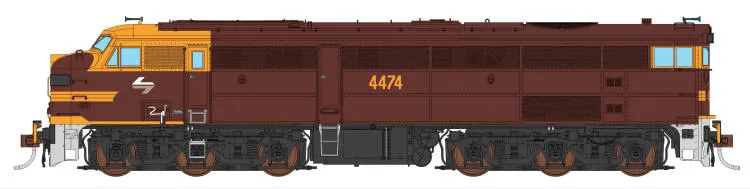 Auscision Models HO 4474 MK2 Indian Red Austerity No Yellow Bottom Band with L7 & Silver Pilots Locomotive