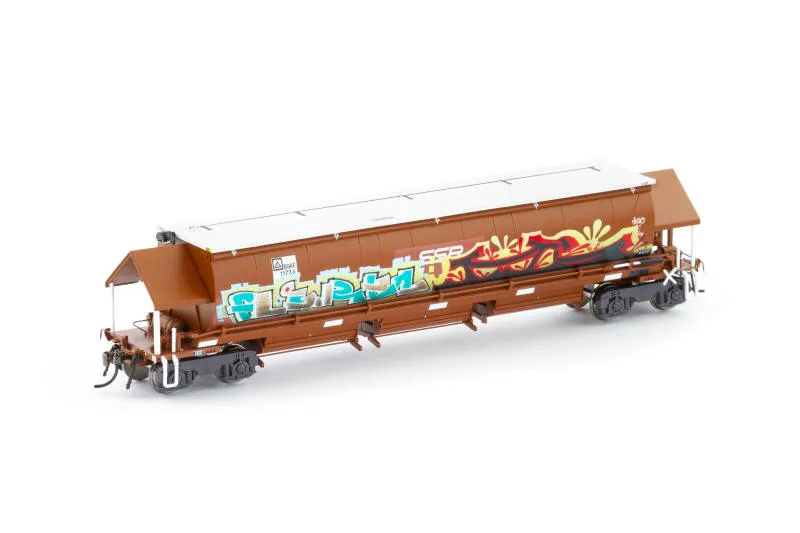Auscision Models HO BGKF Grain Hopper, Faded SRA Red with SSR Logos, Grain Lid, DCA Bogies & Graffiti - Single Wagon