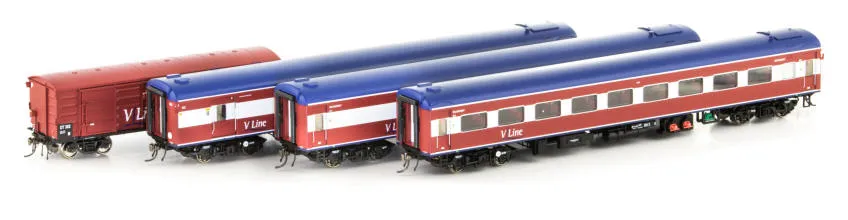 Auscision Models HO V/Line - Passenger MK2 Red/White/Blue with V/Line Logo 4 Car Set