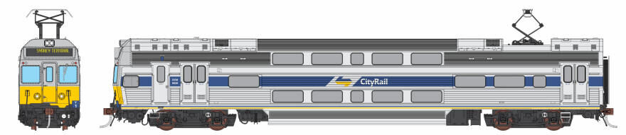 Auscision Models HO V Set CityRail CityDecker, Yellow/Grey Nose with Blue Side Stripe - 4 Car Locomotive Set