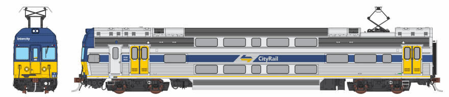Auscision Models HO V Set CityRail Intercity, Blue/Yellow Nose with Blue Side Stripe & Yellow Doors - 4 Car Locomotive Set DCC Sound