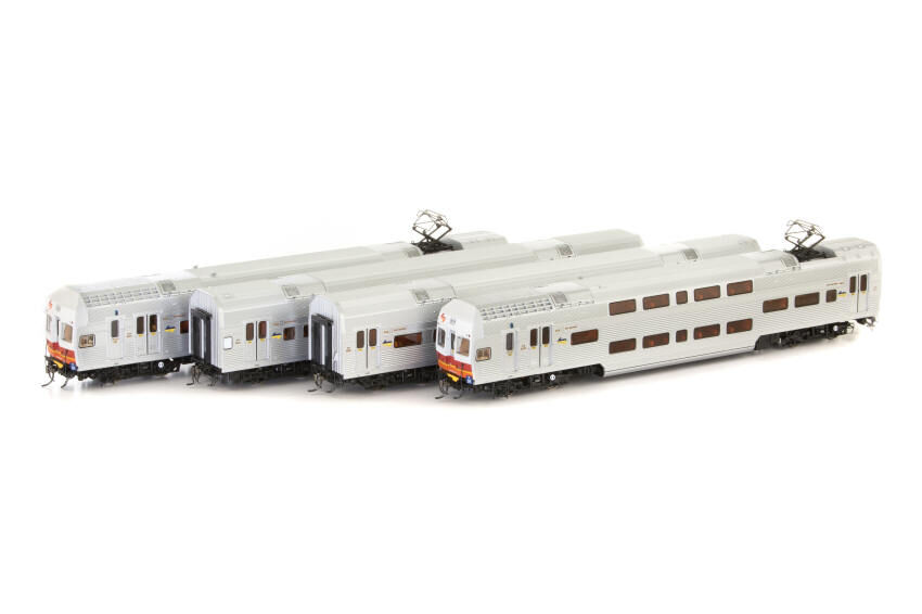 Auscision Models HO V Set SRA Candy, Red/Orange/White Nose with Blue/Yellow Side L7 - 4 Car Locomotive Set