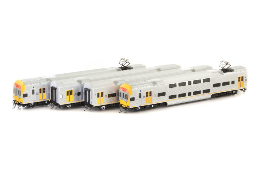 Auscision Models HO V Set TfNSW TrainLink, Red/Grey/Yellow Nose with TfNSW Logos & Yellow Doors - 4 Car Locomotive Set