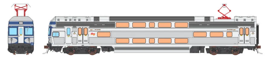 Auscision Models HO V Set TfNSW TrainLink Red/Grey/Yellow Nose with TfNSW Logos & Yellow Doors - 4 Car Locomotive Set DCC Sound
