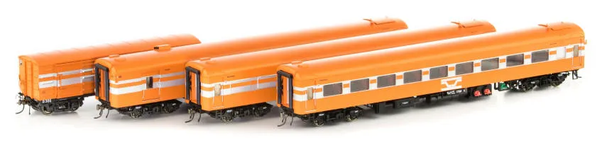 Auscision Models HO VR - VicRail Orange with Silver Stripes and Tea Cup Logo - 4 Car Set