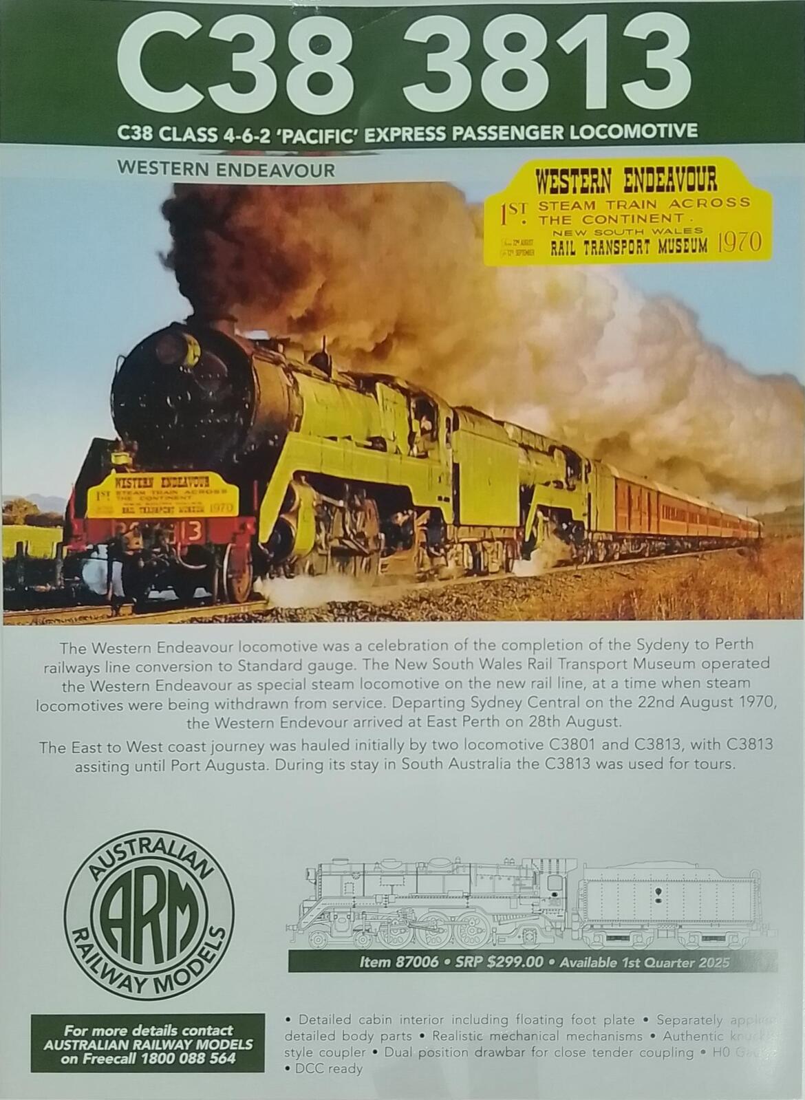 Australian Railway Models HO 38 Class 3813 4-6-2 "Western Endeavour" Passenger Steam Locomotive C38