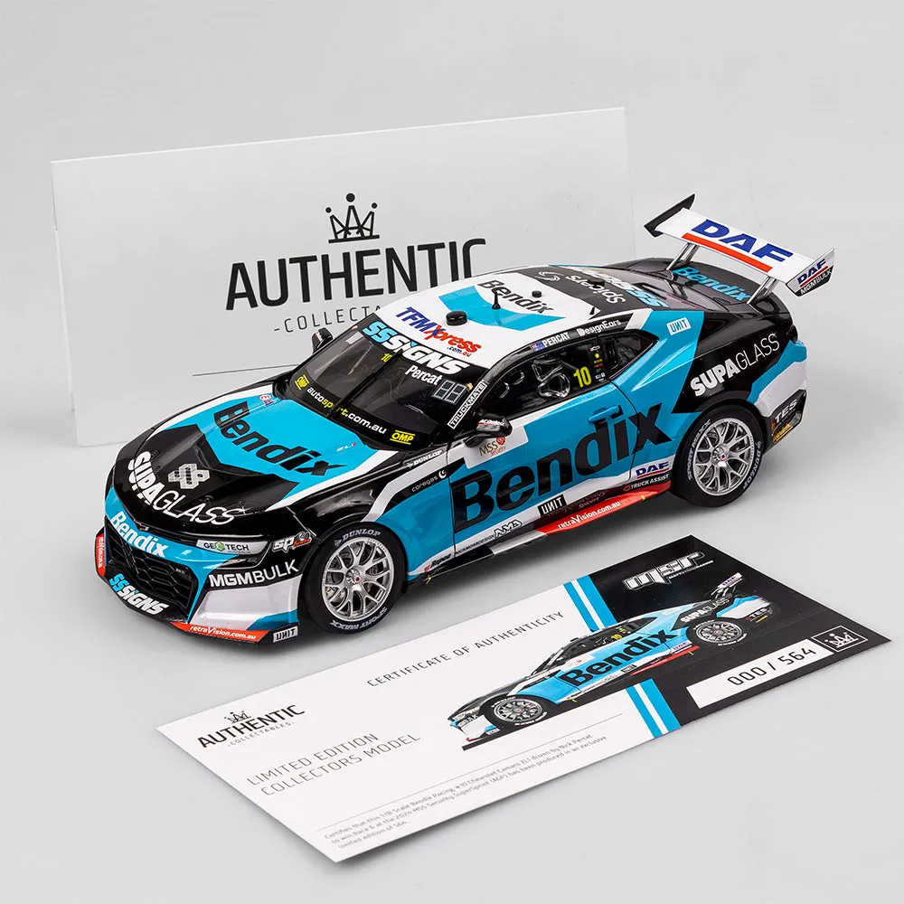 Product Description: 1:18 Scale Bendix Racing #10 Chevrolet Camaro ZL1 - 2024 MSS Security Melbourne SuperSprint (AusGP) Race 6 Winner - Driver: Nick Percat Limited Edition Number: 564 Product Specifications: Die-cast model, opening parts About This Product: Nick Percat was one of many drivers who participated in the driver merry-go-round of team changes for the 2024 Repco Supercars Championship Season, leaving Walkinshaw Andretti United to join Matt Stone Racing.