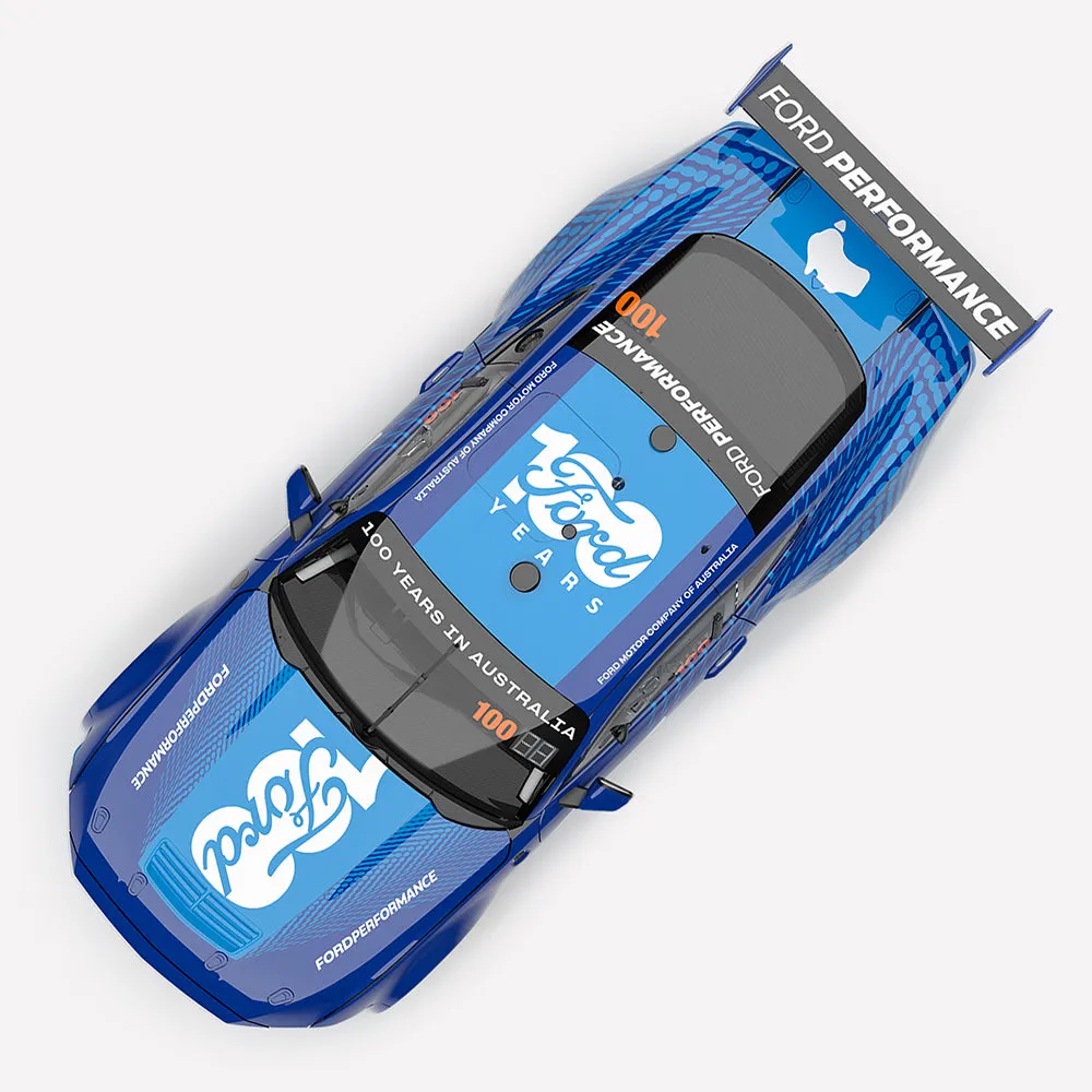 - the Blue Oval’s weapon of choice for racing in this centenary year. Featuring an incredible livery designed by Tristan Groves, the model showcases a striking blue Ford design, drawing inspiration from recent Ford-branded Mustang Supercars of the modern era. Prominent Ford 100 Years and Ford Performance branding adorn the livery, while the bold orange ‘100’ on the windows pays tribute to this iconic brand continuing to lead the pack Down Under. This 1:18 scale model is scheduled to be produced in high quality die-cast with opening parts which includes the bonnet and both the driver and passenger doors. A highly detailed racing cockpit can be seen through the molded clear glasshouse, or by opening the doors to examine the interior further. Under the bonnet includes a detailed 5.4-litre Coyote quad overhead cam V8 and engine bay surround. Underneath the model, the undercarriage details the unique Gen3 floorpan. Comprised of roughly 204 individual metal and plastic parts, with anywhere between 100-200 steps in paint and decoration finishing, including tampo printing where possible, photo etched parts including the bonnet pints, brake rotors and more, this is a high quality, detailed collectors model. It will come in an exclusive, one-off limited edition of 636 with an individually numbered Certificate of Authenticity presented in its own, Authentic Collectables branded protective cardboard folder. Officially endorsed by Ford, it’s a must have for collectors of this iconic brand.