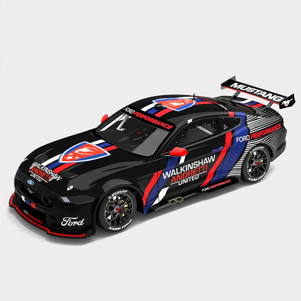 Product Description: 1:18 Scale Walkinshaw Andretti United Ford Mustang GT S550 Prototype Gen3 Supercar - 2022 Ford Performance Switch Livery Limited Edition Number: 216 Product Specifications: Sealed body resin with clear windows and detailed interior About This Product: In mid 2022, Walkinshaw Andretti United shocked the Australian motorsport industry when they announced that they would be racing the Ford Mustang GT in the 2023 Supercars Championship with the introduction of the new Gen3 platform. A team with a long, proud and successful history racing Holden’s since the 1990s, including a long stint as the factory backed Holden Racing Team, many fans expected WAU to carry on racing a General Motors product - the Chevrolet Camaro - under the new rules in the next season.