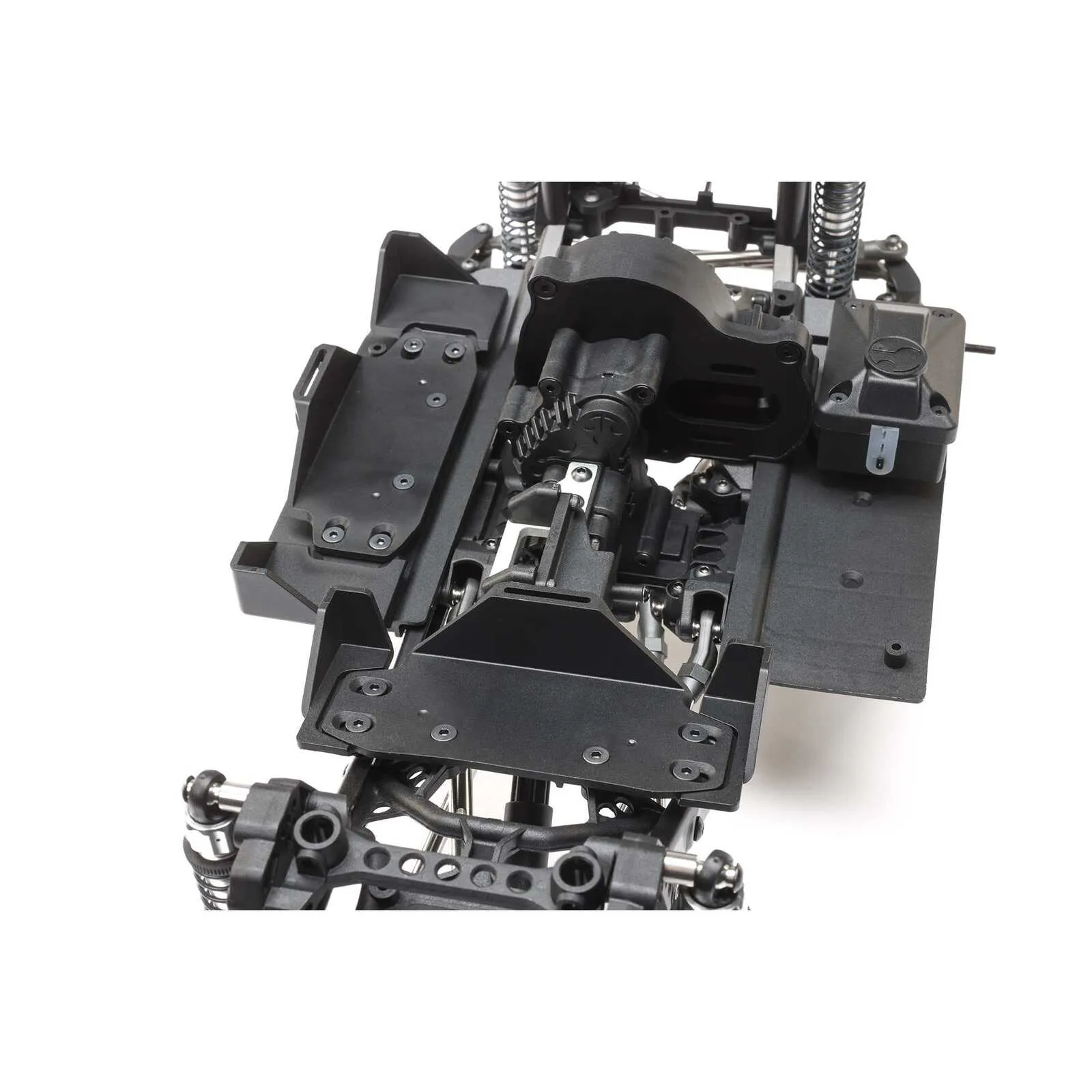 - Strong, adjustable SCX10 III steel C-channel chassis