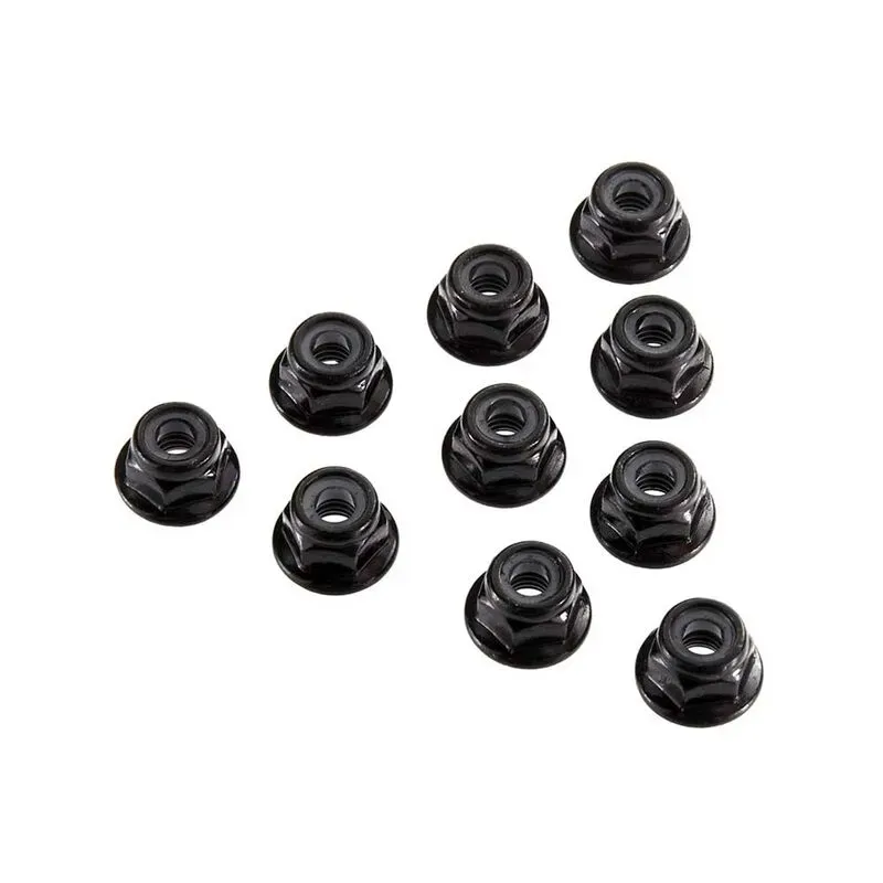 This set of hardware includes a 10 pack of black serrated nylon-insert lock nuts for maximum grip and retention.