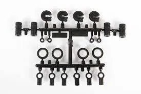 Works with 7mm piston shocks • Includes rod ends, spring adjusters, shock reservoirs and spring perches. • The spring perch design is a clamping type of part, which requires a M3x10mm Hex Socket Button Head screw (AXA115) (NOTE: screws not included)