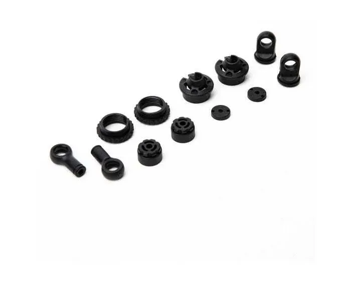 This RBX10 shock parts package provides replacement upper shock cap inserts, lower shock caps, pre-load collars, shock pistons and lower spring retainer cups.