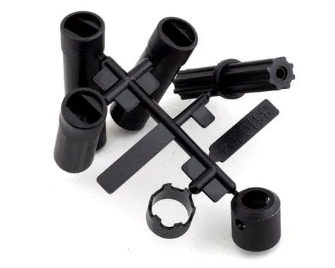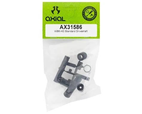 This is the Axial WB8-HD Standard Driveshafts, AX31586 Axial WB8-HD Plastic Driveshaft Tubes feature a center splined slider floats between each end and features added material which reduces flex and fatigue. Package includes three splined tubes, one splined slider, and end caps for the axle and transmission sides - enough to supply the replacement plastic parts to build one driveshaft. Package does not include steel couplers.