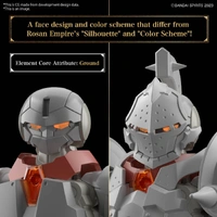 Combine the Silhouette with the armor and weapon parts to create the Liber Fighter! The shoulder and waist armor can be attached via the joint on the back to allow for flexible movement; the Axe and Round Shield can be mounted on the back or waist using joint parts. The attribute of the Element Core is Earth. The face design and coloring are different from the Rozen Empire Silhouette and Fighter, sold separately.