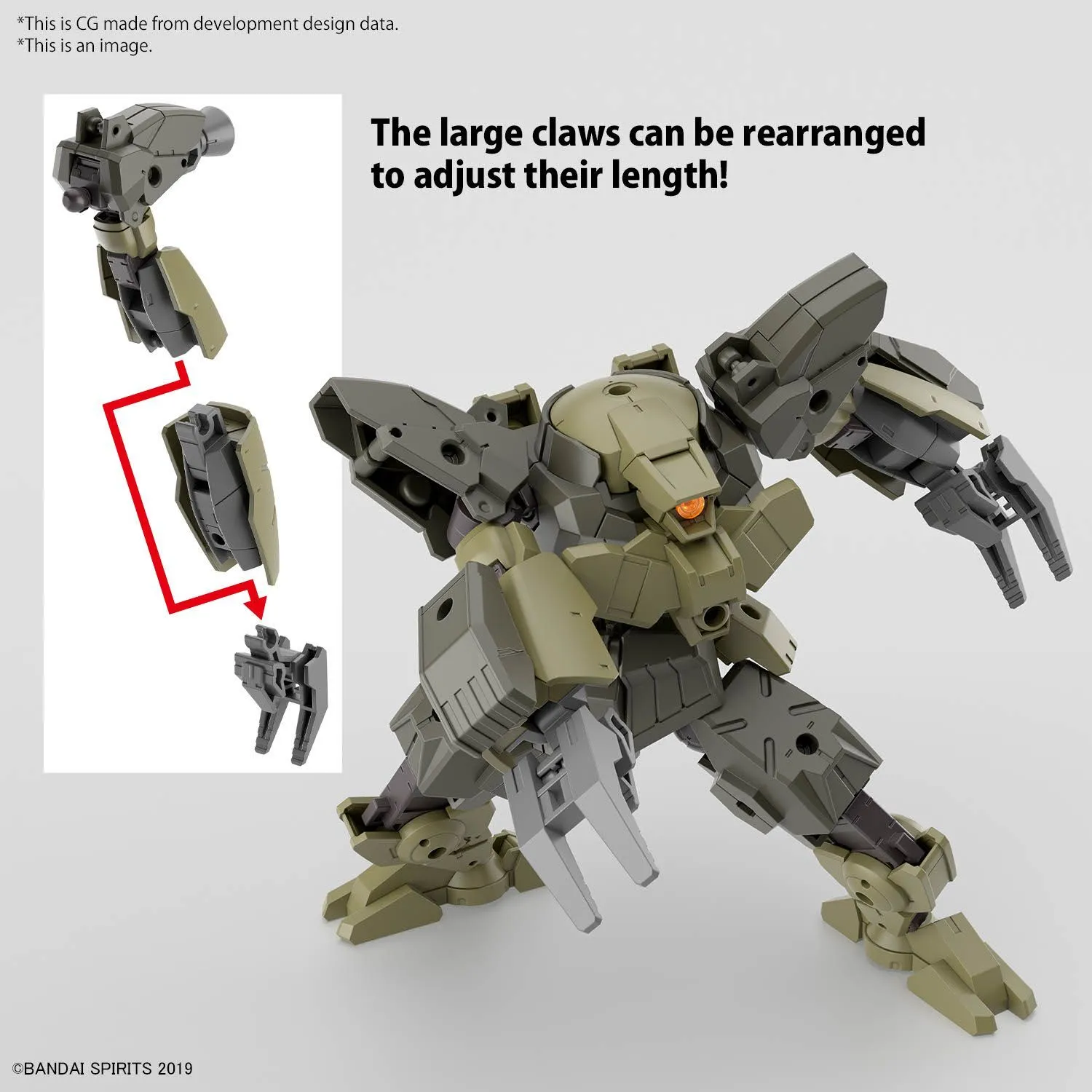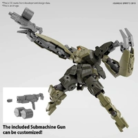 The green variant of the Gardonova, winner of the 30MM Color Variation Grand Prix, is now available as a dedicated model kit. This mech features chest armor, elongated movable arms, and adjustable claw length for versatile posing. The flexible front armor improves waist maneuverability, and the wide range of leg motion allows for diverse poses. The integrated mechanism enables easy combination with other machines like the Rever Nova, and customization is possible with compatible optional parts. The Gardonova also comes equipped with a submachine gun for added firepower.