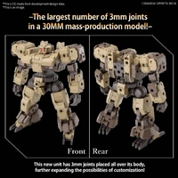 Introducing the Vaskyrot of the Earth Allied Forces by Bandai, the latest addition to their "30MM" (30 Minutes Missions) model-kit series! Boasting the highest number of 3mm joints in the entire 30MM lineup, the Vaskyrot offers unprecedented expandability. The backpack, featuring a built-in C-type joint, is also designed for expansion. This kit comes complete with a rifle and shield, with the shield equipped with multiple 3mm joints on both sides for enhanced versatility.