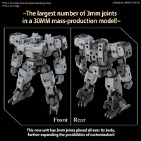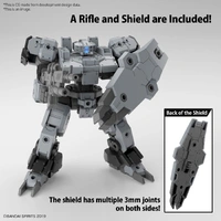 Introducing the Vaskyrot of the Earth Allied Forces by Bandai, the latest addition to their "30MM" (30 Minutes Missions) model-kit series! Boasting the highest number of 3mm joints in the entire 30MM lineup, the Vaskyrot offers unprecedented expandability. The backpack, featuring a built-in C-type joint, is also designed for expansion. This kit comes complete with a rifle and shield, with the shield equipped with multiple 3mm joints on both sides for enhanced versatility.