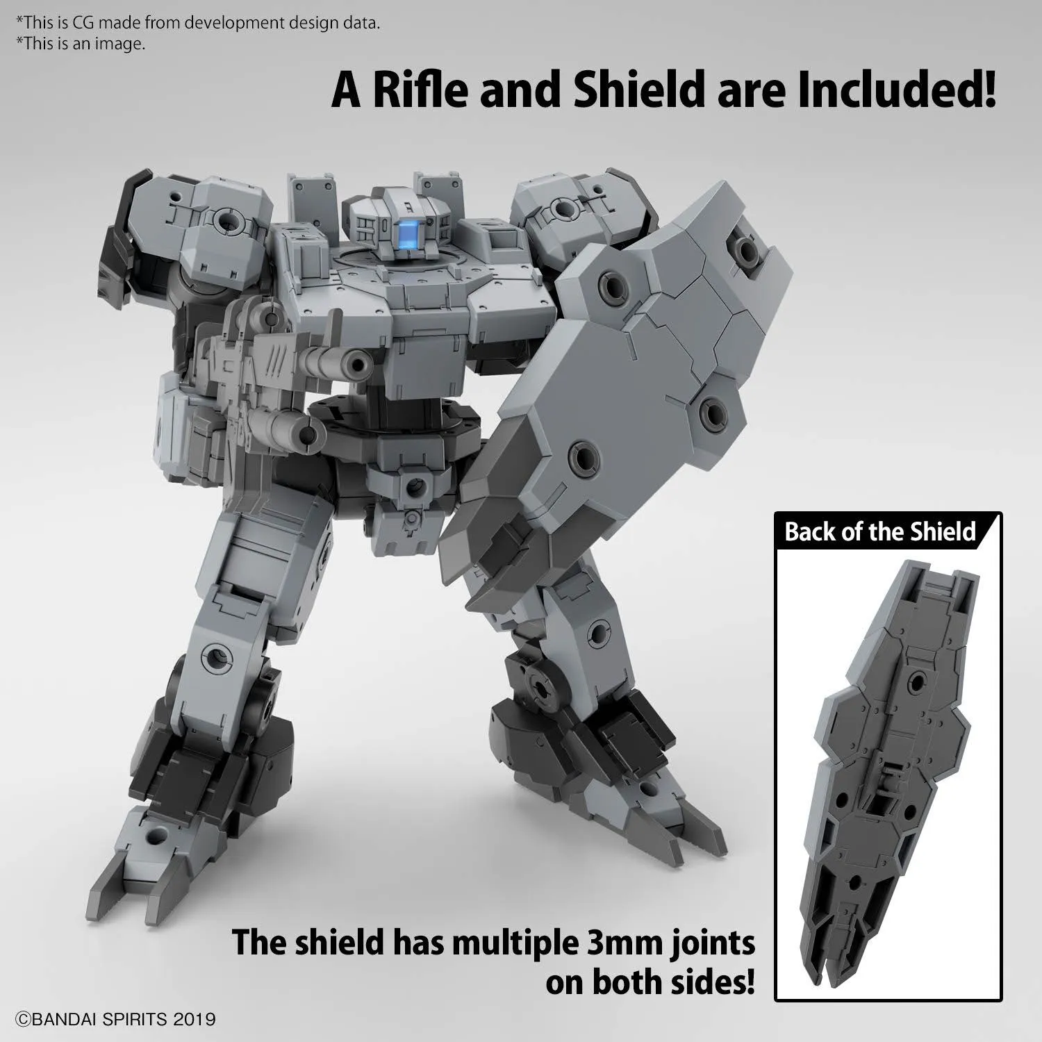 Bandai brings us the Vaskyrot of the Earth Allied Forces -- the newest member of their "30MM" (30Minutes Missions) model-kit lineup! The Vaskyrot is equipped with the most 3mm joints in the history of the 30MM lineup, for more expandability than ever before! Its backpack with a built-in C-type joint can be expanded too. A rifle and shield are included; the shield is equipped with multiple 3mm joints on both sides. Although the Vaskyrot has massive proportions, it's flexible enough that it can kneel on one knee; a newly designed RoiRoi drone unit is included too.
