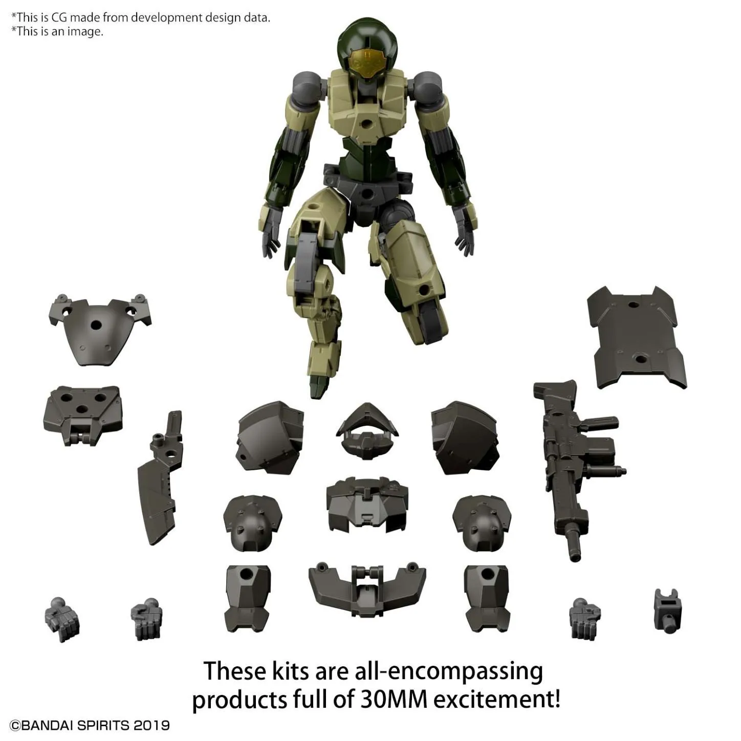 BANDAI 30MM 1/144 EXM-A9A SPINATIO (ARMY TYPE) The 30MM (30 Minutes Missions) Spinatio is now available in a Maxion Army specification! This all-in-one item combines armor and weapon parts in addition to the main figure; while taking full advantage of the range of mobility, there's no pinching during assembly. Various weapons such as assault rifles, combat knives, and shields are included, and a common 3mm joint structure allows you to combine existing 30MM items with this kit.