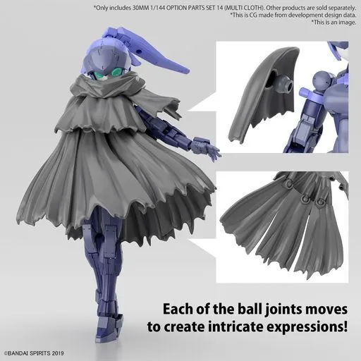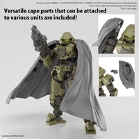 Introducing a new offering from Bandai, a set of two distinct cloaks designed specifically for their "30MM" (30 Minutes Missions) model-kit series! These cloaks are perfect for adding a touch of drama to your figures, creating that dynamic windblown appearance.Featuring ball joints in strategic locations, the cloaks offer a range of movement options, allowing for a variety of poses and expressions.