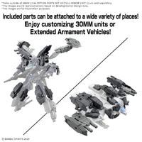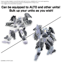 The armament and armor from the 30MM 1/144 eEXM-17FA Full Armor Alto (sold separately) are now available as an optional parts set, featuring a versatile gray-based color scheme! This set is designed to enhance not only the Alto model but also a variety of other aircraft in the series.