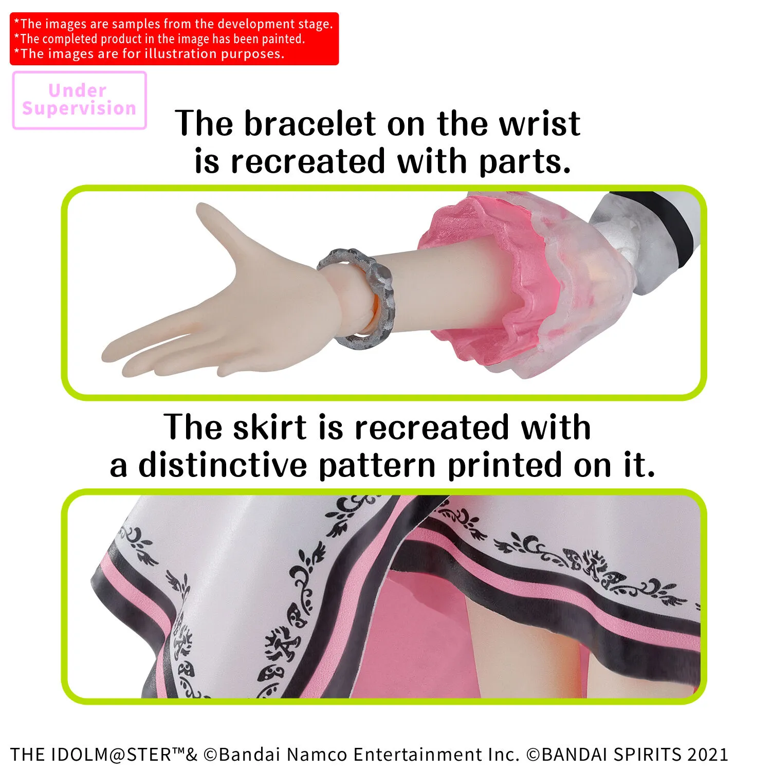 Transparent components beautifully render her decorative hair accessory and collar with crystalline clarity, while the patterned skirt sheet delivers authentic costume authenticity.