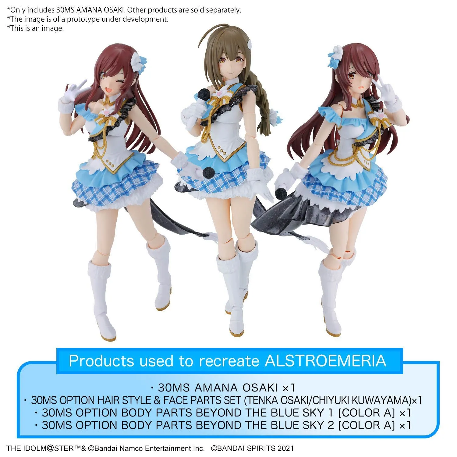 SKU: G5066311 | Brand: Bandai | Product: Bandai 30MS The Idolm@ster: Amana Osaki Plastic Model Kit Bandai's 30MS lineup expands to include Amana Osaki from "The IdolM@ster Shiny Colors," a member of the "Alstromeria" idol group. Three tampo-printed facial options enable varied expressions; the included bangs piece allows display without the hair ornament. Intricate chest ornaments are separated into individual components for simplified assembly, while the rear wing attachments feature optimized design for construction ease. A plastic inlay within the chest heart piece mimics translucent appearance, and the skirt features printed textile detailing that forms natural wave patterns. Select components incorporate smoked clear material with glitter effects. Matte-finished skin elements provide soft-toned light reflection; multiple articulated hand configurations are also provided. Includes - Face parts (tampo printed) (x3) - Hand parts (x1 set) - Bangs parts (no hair ornament) - Microphone - Stickers