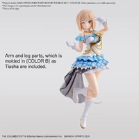 Bandai brings us the "Beyond the Blue Sky" costume, as seen in "The IdolM@ster Shiny Colors," as a set of option body parts for your "30MS" (30 Minutes Sisters) action-figure model kits! This set uses Color B for the arms and legs, similar to Tiasha's color. The chest part of the costume is carefully divided into different parts so you can get a great result just by assembling it; three types of chest part are included. The small wings on the back of the outfit are also carefully designed for easy assembly. The heart on the chest has a plastic seal to express its clear texture, and the skirt is made of a sheet with a pattern printed on it to create a wavy shape. Some parts are made of smoked clear material with glitter! The skin parts of the kit are given a matte finish to create a soft-looking, light-reflecting effect; expressive interchangeable hands are included too.