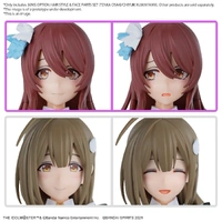 Combine these parts with Bandai's 30MS Option Body Parts Beyond the Blue Sky 1 (Color A) and 30MS Option Body Parts Alpha Sisters Phantasm 1 (Color A) to assemble Tenka Osaki and Chiyuki Kuwayama from "The IdolM@ster" series! Each character's hair has been meticulously sculpted to capture its delicate flow, with detachable hair accessories that can be interchanged to complement different costume designs. Additionally, the figures can be displayed with or without hair ornaments for added versatility. Each character comes with two types of tampo-printed facial expressions, allowing for a range of emotive displays to bring these idols to life.