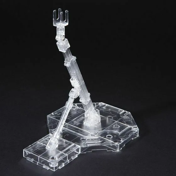 Action Base allows Gunpla kits to be displayed in aerial poses. Each Action Base comes with an arm that can be adjusted in height and angle, as well as different adapters for older Gunpla kits that do not have peg holes available. The bases are modular and can connect to other Action Bases to display multiple Gunpla kits.