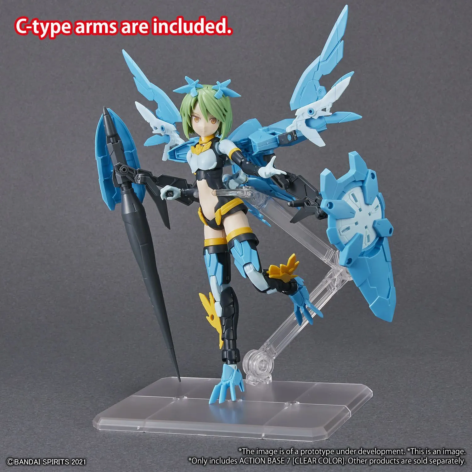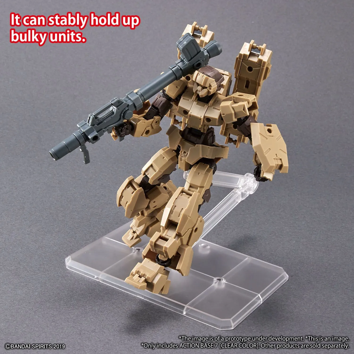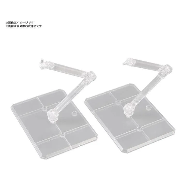 Bandai introduces its seventh action base featuring a user-friendly and straightforward design. This structure ensures the secure placement of 1/144-scale models, while the flexibility of each axis allows for a diverse range of display poses. The package includes various joint and arm parts that offer customization options, making it adept at accommodating even larger models with ease. The base is meticulously crafted with a focus on durability and providing steadfast support for dynamic airborne poses.
