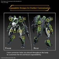 Bandai presents the High Grade model kit of the MAILeS Gouyou Custom from "Kyoukai Senki," the mech piloted by the main character! This kit emphasizes expandability, featuring 3mm-diameter connection holes strategically placed for customization. Combine it with the weapon set series (sold separately) to create your own custom model! The kit includes a variety of weapons such as the arm pile, normal assault rifle, and normal handgun. These weapons can be attached to various connection holes using the included joints. Additionally, the pile part of the arm pile can slide and reproduce the injection state without requiring parts replacement, adding to the kit's versatility and dynamic posing options.