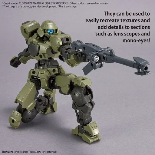 Bandai's official material parts brand "Customize Material" offers a set of 3D lens stickers, ideal for 1/144-scale models! These stickers are a perfect way to introduce beginning modelers to customization; they come in two colors, clear and blue, and two sizes, 5mm and 4mm diameter.