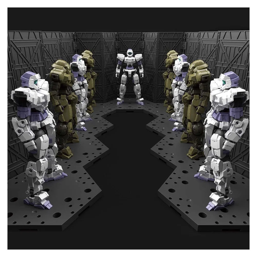 SKU: G5059534 | Brand: Bandai | Product: Bandai Customize Scene Base The Bandai 5059534 Customize Scene Base is designed for 1/144 scale 30MM (30 Minute Missions) model kits and measures approximately 4.72 inches (12cm) tall. This gray plastic model kit includes wall sections that add architectural and mechanical elements to dioramas. The base and support joints can be connected and stacked to create larger hangar displays. Multiple sets are compatible with one another, allowing for extensive customization. Use with 30MM series kits (sold separately). Contents: Base pieces, Multiple support joints, Wall parts, Instruction Manual