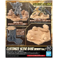 Bring your 30MM display to life with Bandai's Customize Scene Base series. The base features a sand-like surface, and includes rocks as well as dust effect parts to create a more dynamic display when posing your 30MM kits (sold separately). This model kit includes pieces to build a custom base for 30 MM kits and features a desert theme. Included are effect parts to simulate rocks and dust, and you can connect multiple kits together.