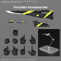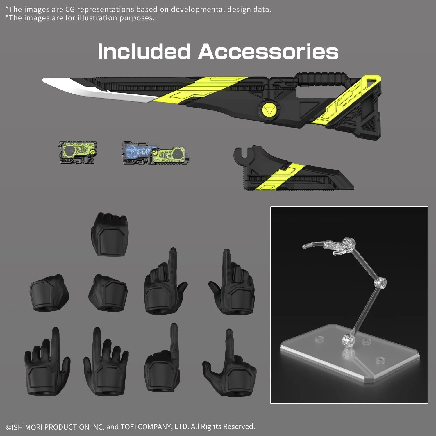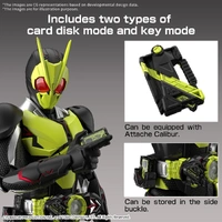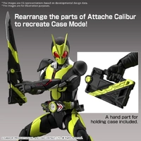 He'll have an incredibly wide range of motion after assembly, allowing you to freely recreate all kinds of dynamic poses; his abdomen is retractable, improving the range of forward-bending motion. The neck and head are connected with a double ball joint to ensure realistic poses, and the Rise Architect expresses different textures through different surface treatments and molding. The Attache Calibur can be rearranged to recreate its attache case form! The Progrise Key comes in both card disk mode and key mode. It can be loaded into the Attache Calibur, or stored in the side buckle of the belt; special hand parts are included to hold the Progrise Key. An Action Base 6 is included.