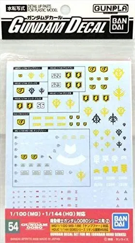Free Shipping For Orders Over $150 To Metro Areas* (Online orders only)These are high-quality water-slide decals to add custom markings to your MG 1/100 and HG 1/144-scale model kits of Zeon Mobile Suits from "Gundam 0080."