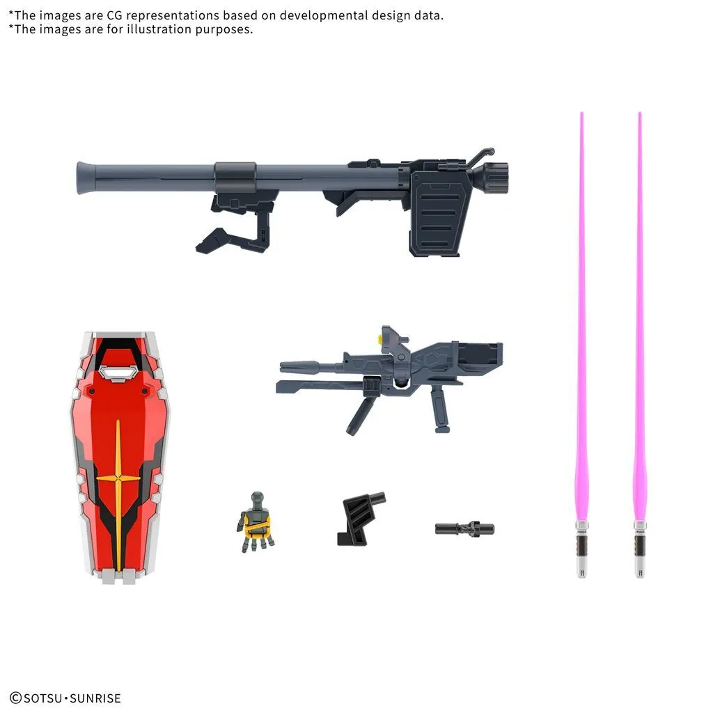 - The distinctive coloring around its head and torso, and the design of the sides of the head, which are different from the red Gundam, are accurately reproduced.