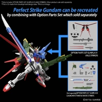 This option parts set from Bandai provides all the necessary components to transform your Entry Grade 1/144 Strike Gundam into the Aile Strike Gundam, and it's also compatible with other HG items! It includes 3mm joints and C-type joint parts that can be selected based on the specific kit it's used with. Additionally, a variety of armaments such as a bazooka and the Grand Slam are included, allowing for versatile customization options. For those seeking even more customization possibilities, you can recreate the Perfect Strike Gundam by combining this set with the Gundam Option Parts Set 2, available separately!