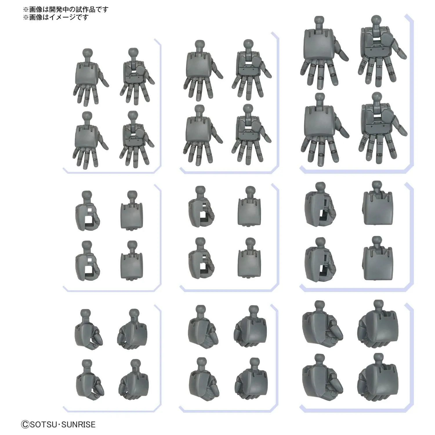 Bandai presents an innovative option parts set designed to enhance the expressiveness of your Gundam model kits! This set features round-fingered hands available in three sizes: small, medium, and large, providing a total of 36 hand parts to cater to various poses and configurations.