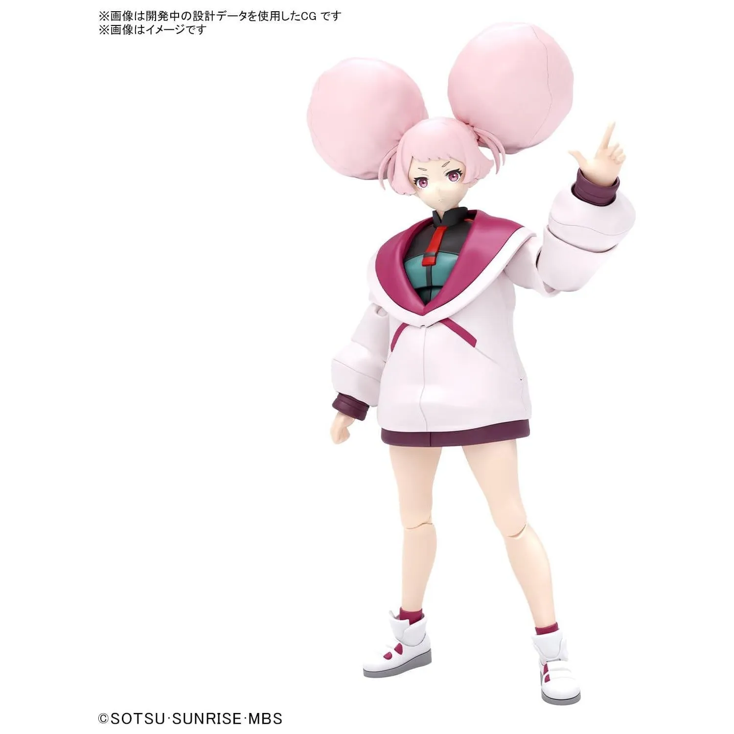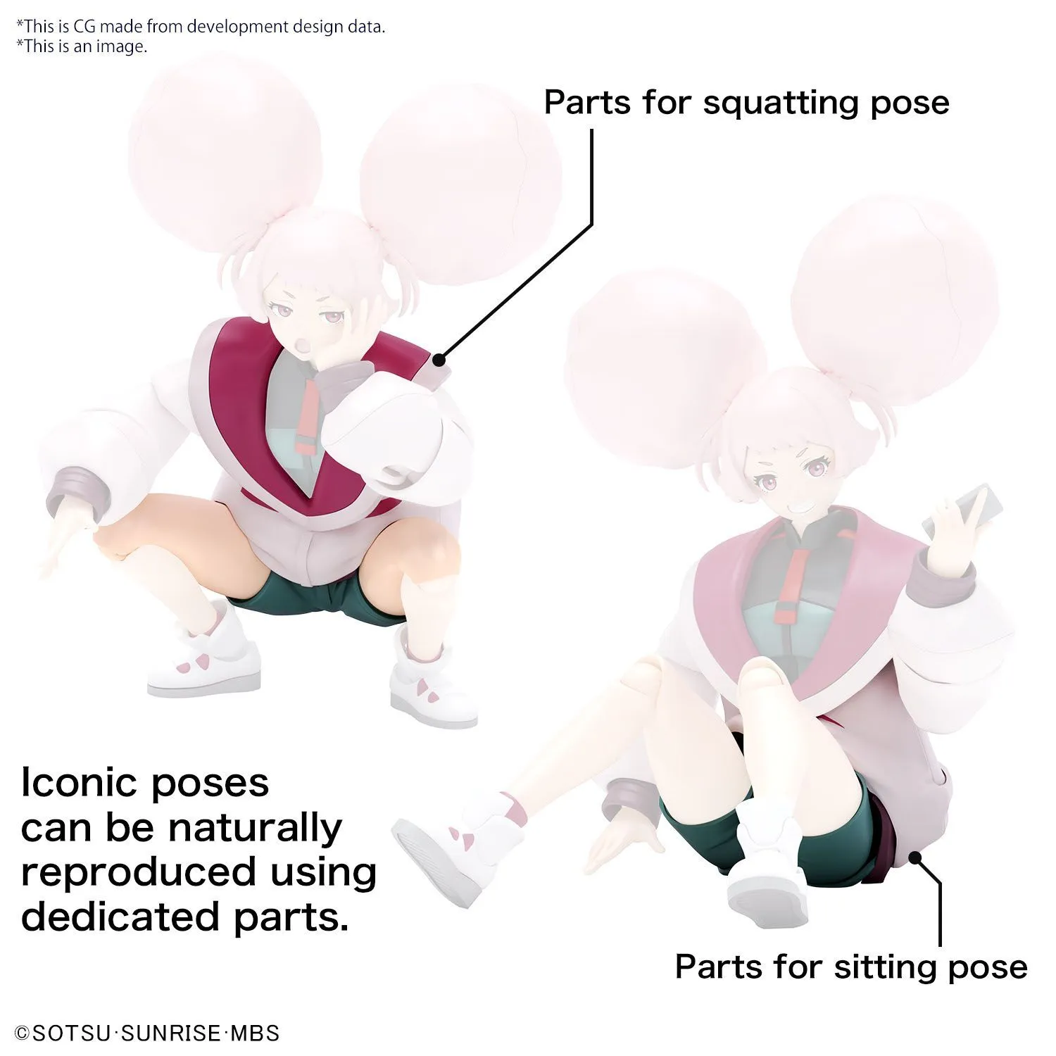 Chuatury Panlunch, featured in "Mobile Suit Gundam: The Witch From Mercury," has officially joined the Bandai "Figure-rise Standard" model-kit collection. This release showcases her with a single tampo-printed facial expression and introduces two additional expressions using waterslide decals. Her distinct hairstyle is meticulously rendered in three dimensions, and her uniform is meticulously divided into components, with shoulder and chest embellishments replicated using stickers. The package also features special body parts for displaying her in either a squatting or sitting position, along with a generous selection of 10 interchangeable hands. Additionally, the kit includes essential tools, a student notebook resembling a smartphone, and a versatile base with an extensive range of motion through its support arm.