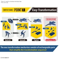 Includes: Gunpod (x2) Parts for gun pod storage state (x2) Effect parts Landing gear (x1 set) Fighter form reproduction parts (x1 set) Joint parts (x1 set) Hand parts (x1 set) Stickers