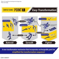 Includes : - Gun pod - Shield - Knife - Missile deployment parts (left and right, x2) - Landing gear - Fold wave projector deployment parts (x2) - Fighter form reproduction parts (x1 set) - Joint parts - Hand parts - Base for display - Name sticker ( G50656911 )