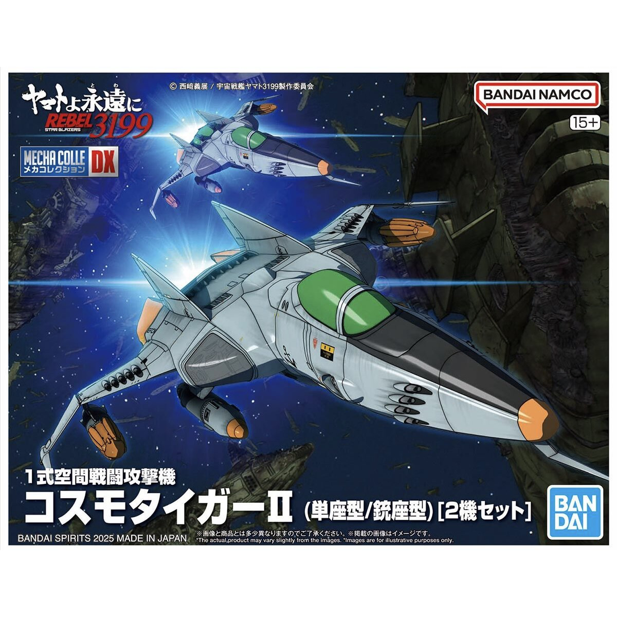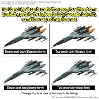 Bandai introduces the Type-1 space combat attack aircraft Cosmo Tiger II (single-set/gun turret model) to their "Mecha Collection DX" series! Seen in "Be Forever Yamato: REBEL 3199," this fleet spacecraft is faithfully recreated with newly designed parts. The canopy features an ultra-thin polarized material to accurately reflect its anime look, and the kit comes pre-colored. You can assemble two variations of the Cosmo Tiger II from four possible configurations: a single-seat body, a body with a gun turret, a standard-form nose, and an image-form nose. The adjustable display base allows for customizable angles, and waterslide decals are included for detailed finishing touches.