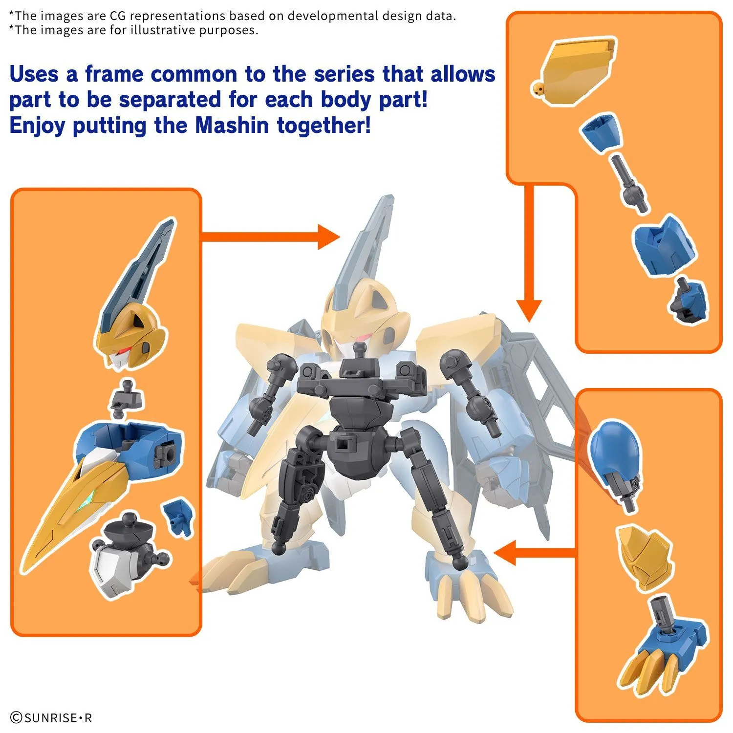 SKU: G5068350 | Brand: Bandai | Product: Bandai Wataru Tenshohmaru Plastic Model Kit Licensed from "Mashin Hero Wataru," the Tenshomaru mecha now exists in plastic model kit form. Upon assembly, the figure incorporates articulated joints and structural elements permitting extensive positional variation. Kit contents include molded components for Tenshomaru construction, paired sword accessories, interchangeable hand configurations, and assembly instructions.