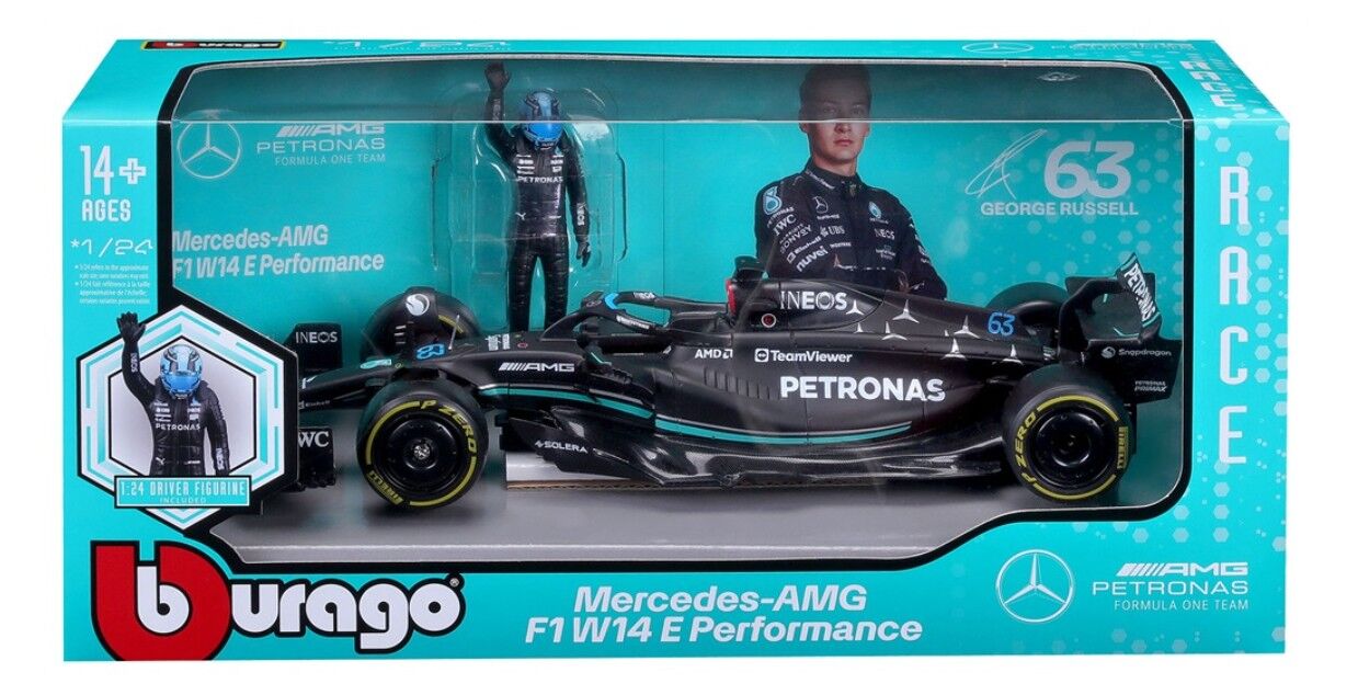 Bburago 1/24 2023 Mercedes AMG W14 with Russell Driver Figurine #63 in WB